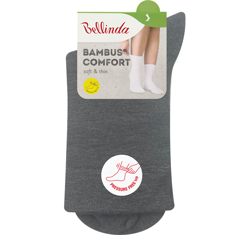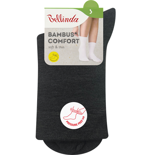 BAMBUSZ COMFORT bambuszból készült, viszkóz és elasztán kombinációjú női zokni. Az alapanyag légáteresztő képességének és természetes puhaságának köszönhetően egész napra kényelmes viseletet biztosít. Gumírozás könnyített szárrésszel.