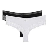 Női csipkés pamut alsó, nagyszerű illeszkedés, kényelmes viselet, rugalmas, 2 db egy csomagban (fekete, fehér).