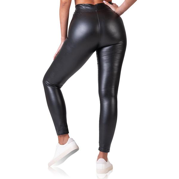 Női bőrhatású leggings. Tökéletesen illeszkedik az alakhoz, fényes és modern megjelenést kölcsönöz. A leggings széles dereka kényelmes viselet és kiemeli a derekat. A leggings belseje puha, anyaga átlátszatlan.