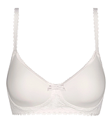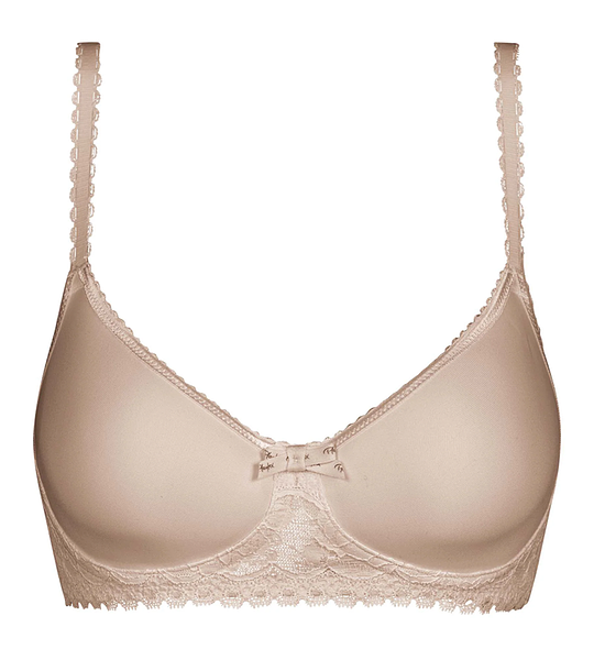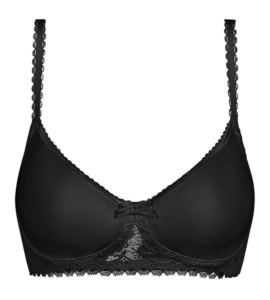Női, enyhén párnázott, merevítő nélküli melltartó, széles pántokkal a tökéletes tartásért és kényelemért, csipkedíszítéssel.